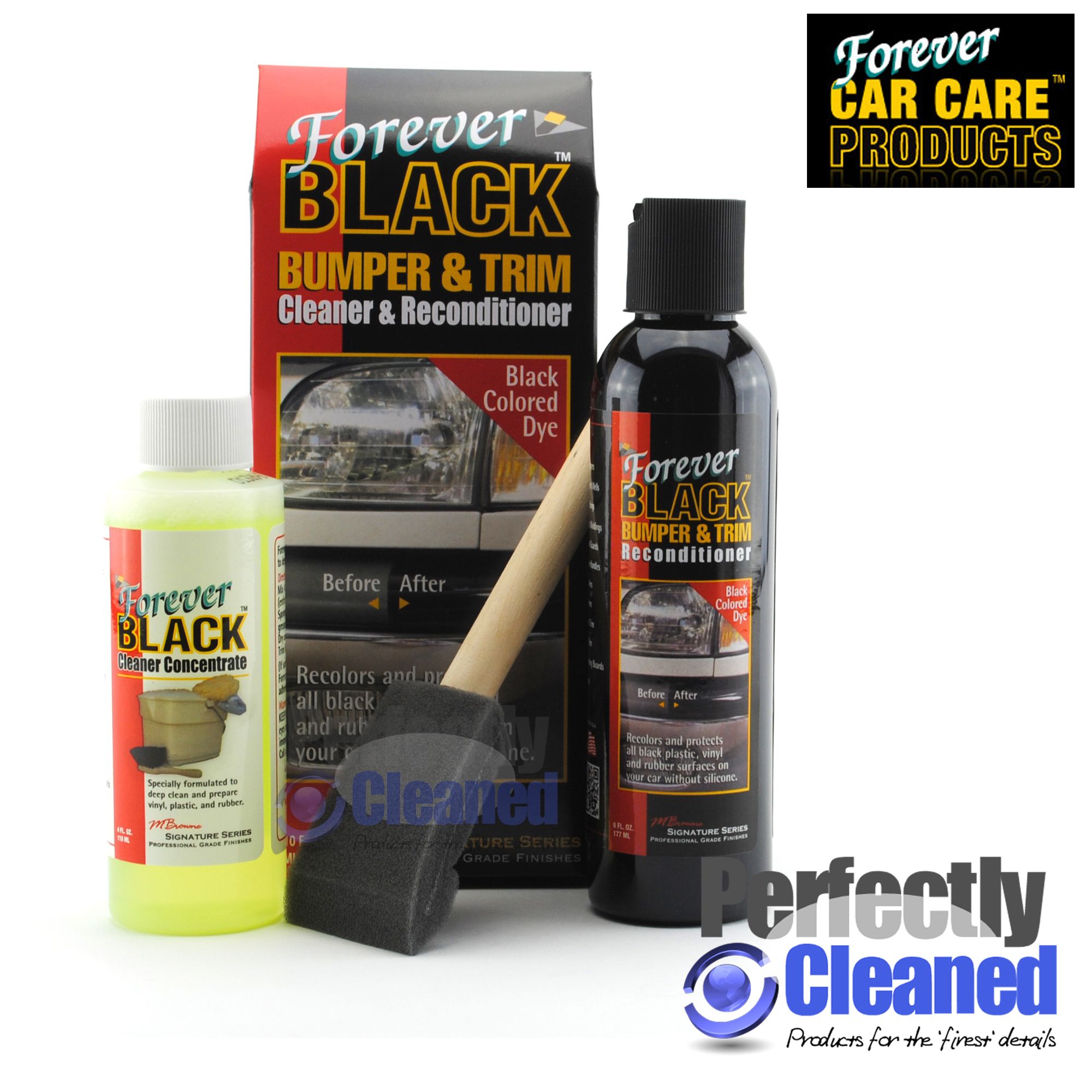 Forever Black Bumper & Trim Dye Kit restores a dark, black, finish on sun-faded bumpers and body mouldings. This is not a cosmetic dressing but an easy-to-use permanent dye.